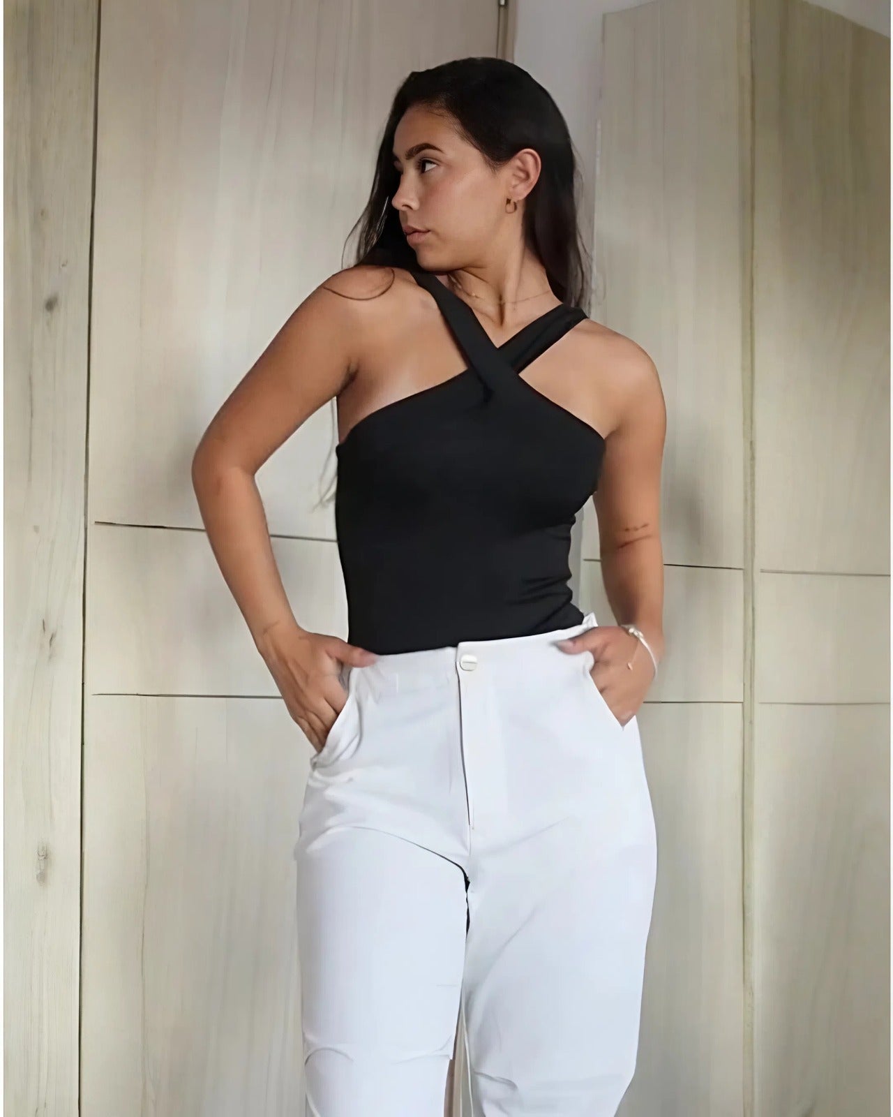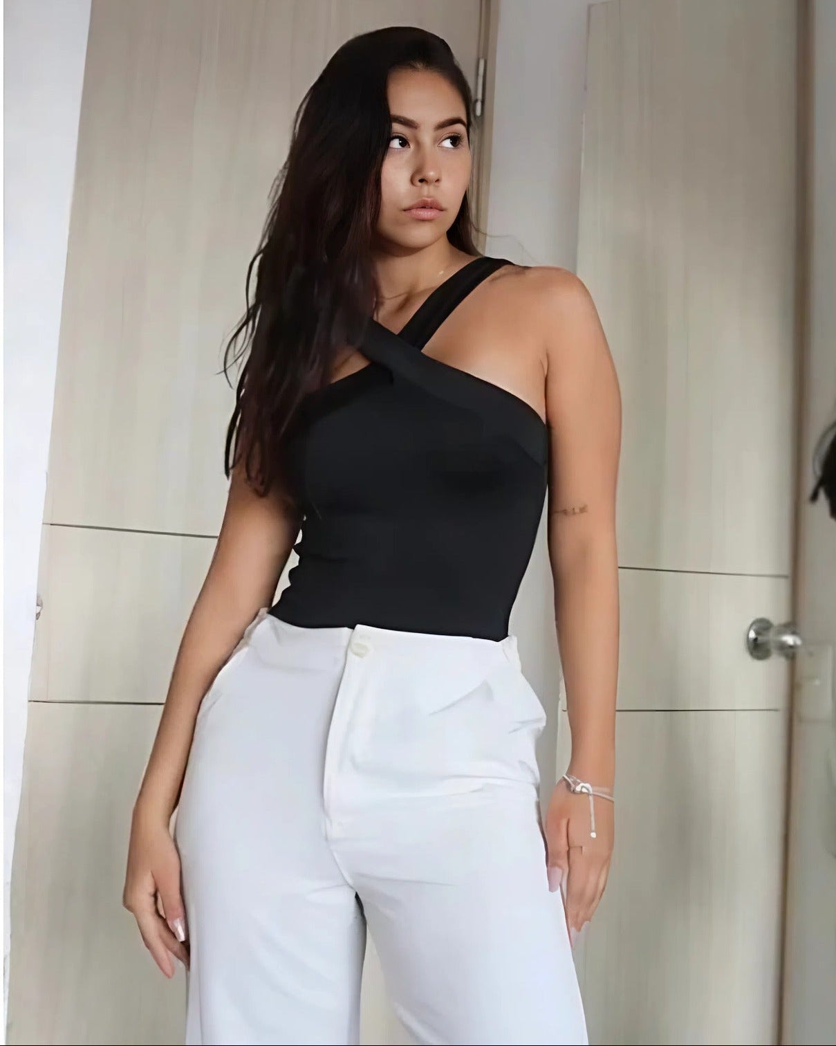Este body está diseñado para realzar la figura femenina, confeccionado en una suave y elástica tela polilycra que se adapta cómodamente al cuerpo. Su diseño de talla única lo hace versátil, permitiendo que se ajuste a diferentes tipos de cuerpo. Con un escote elegante y detalles que pueden incluir mangas largas, cortas o sin mangas, este body es perfecto para combinar con jeans, faldas o shorts. Ideal para ocasiones casuales o eventos más formales, su tejido de polilycra proporciona una sensación de ligereza y comodidad durante todo el día.