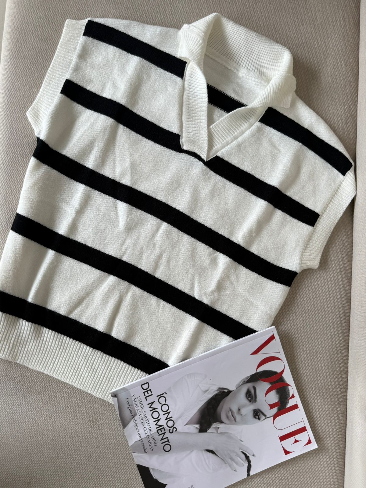 Este suéter de cuello a rayas es perfecto para la primavera y el verano. Con un diseño elegante de bloques de color y mangas cortas, es ideal para cualquier ocasión. Manténgase a la moda y cómodo con esta prenda de alta calidad.