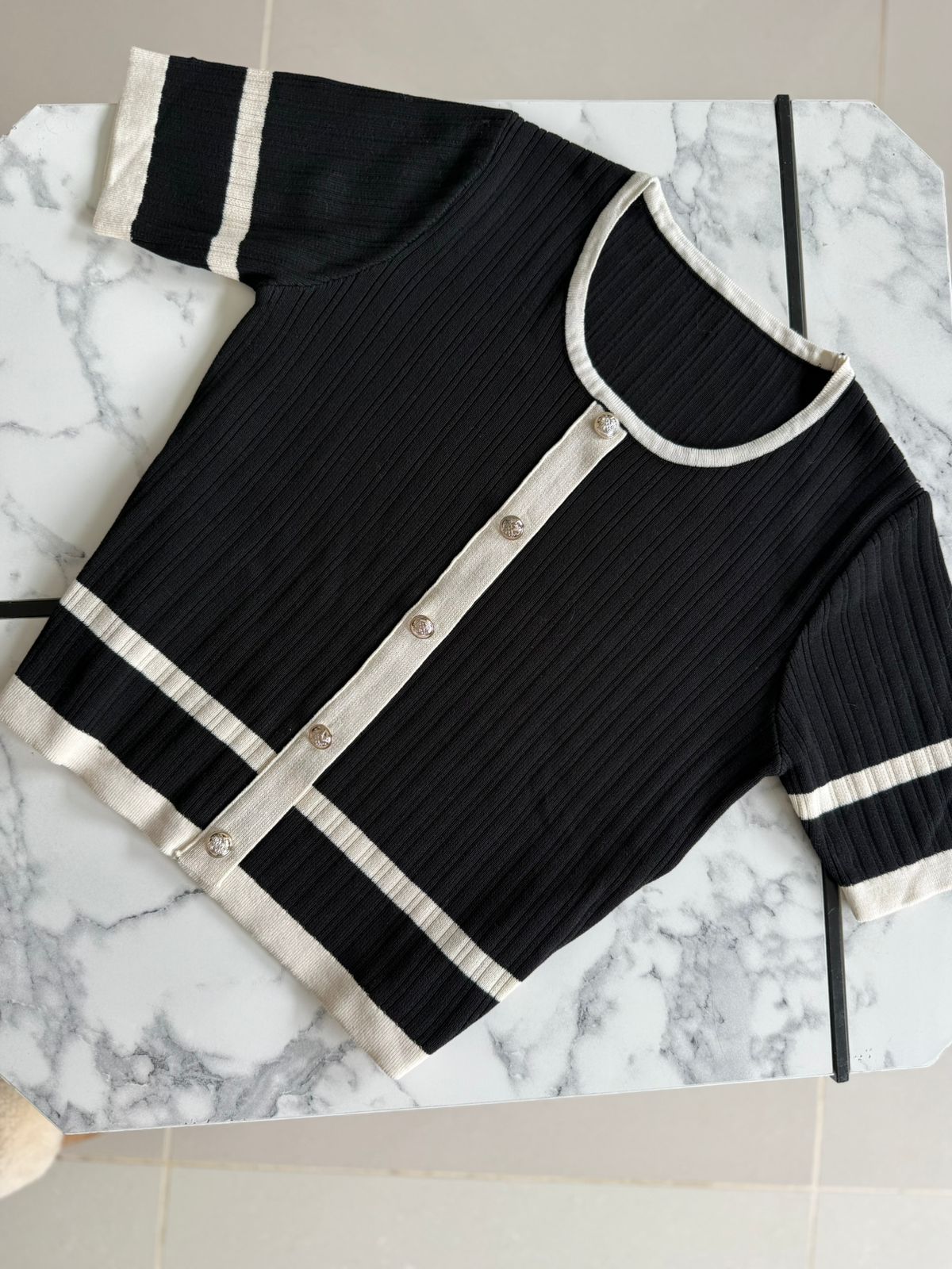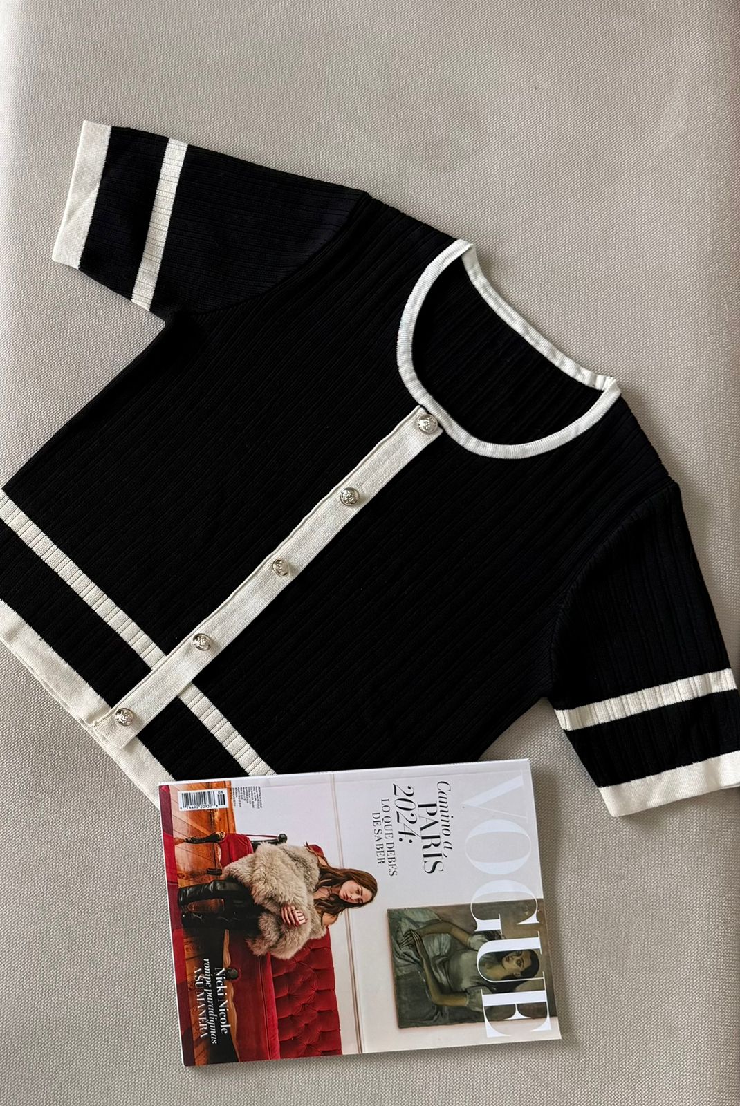 Descubre la última moda femenina de otoño e invierno con nuestra REFERENCIA 5. Este suéter presenta un cuello redondo y mangas cortas para un estilo moderno y cómodo. Confeccionado en tejido de punto con bloques de color, este suéter es perfecto para mantenerte abrigada y a la moda durante las temporadas más frías.