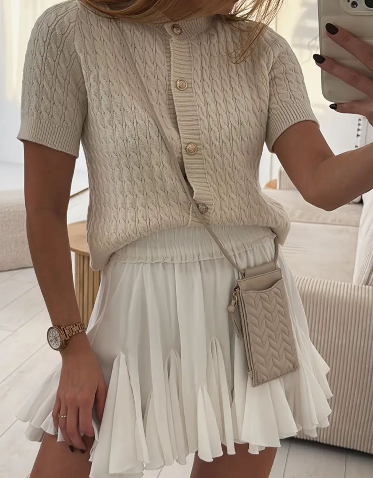 Esta hermosa camisa tejida con botones dorados es perfecta para tus looks de fin de semana, añadiendo elegancia y estilo a tus outfits. Con Referencia 6 siempre lucirás hermosa y única. ¡No pierdas la oportunidad de destacar con este especial elemento en tu guardarropa!